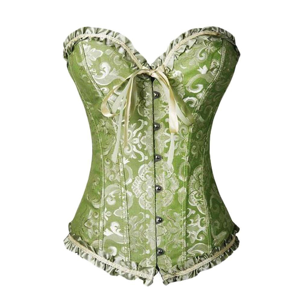 Women's Vintage Floral Jacquard Bridal Overbust Bustier Corset Top, Green